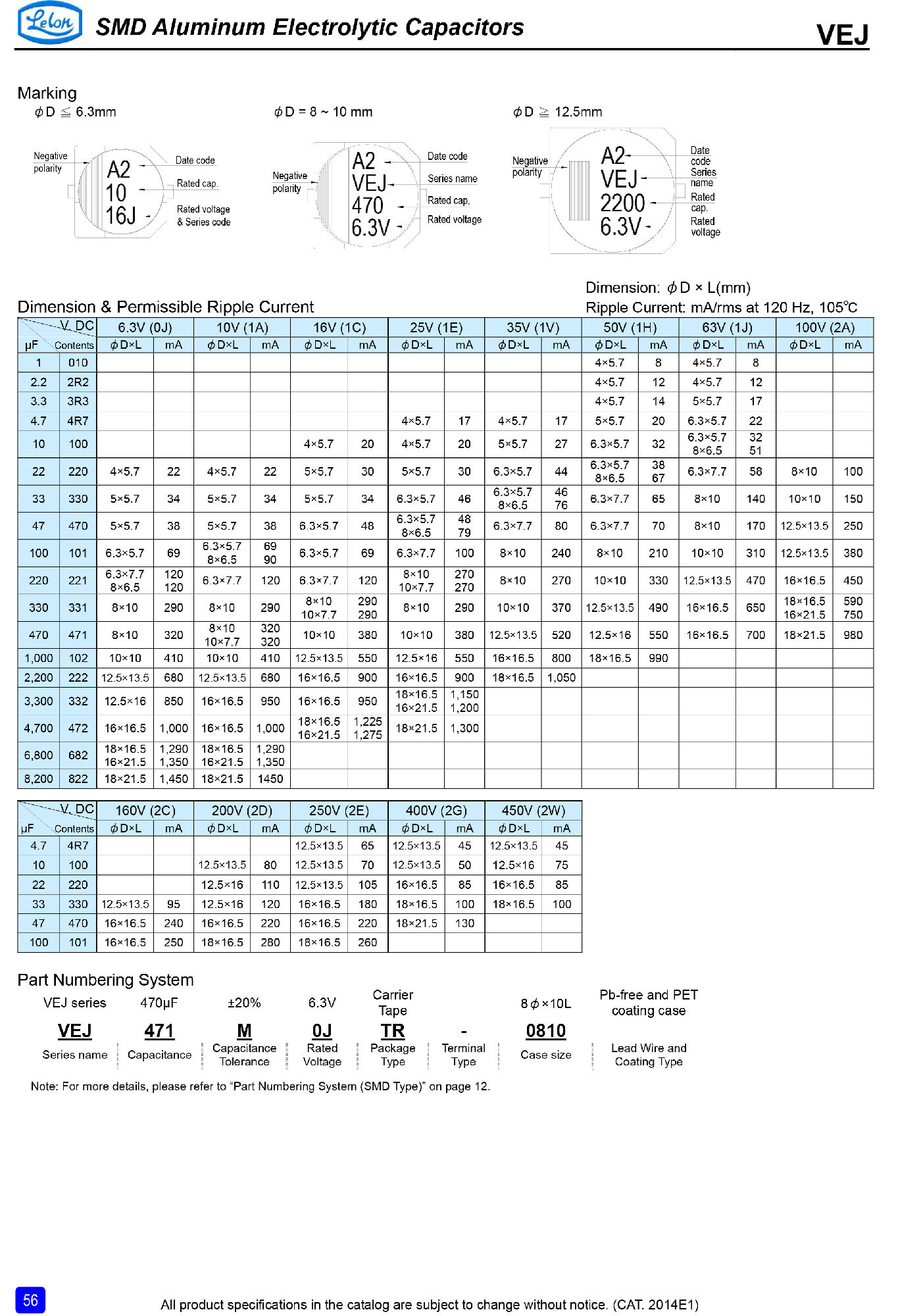 【型號(hào)種類(lèi)齊全】立隆貼片電解電容VEJ系列鋁電解